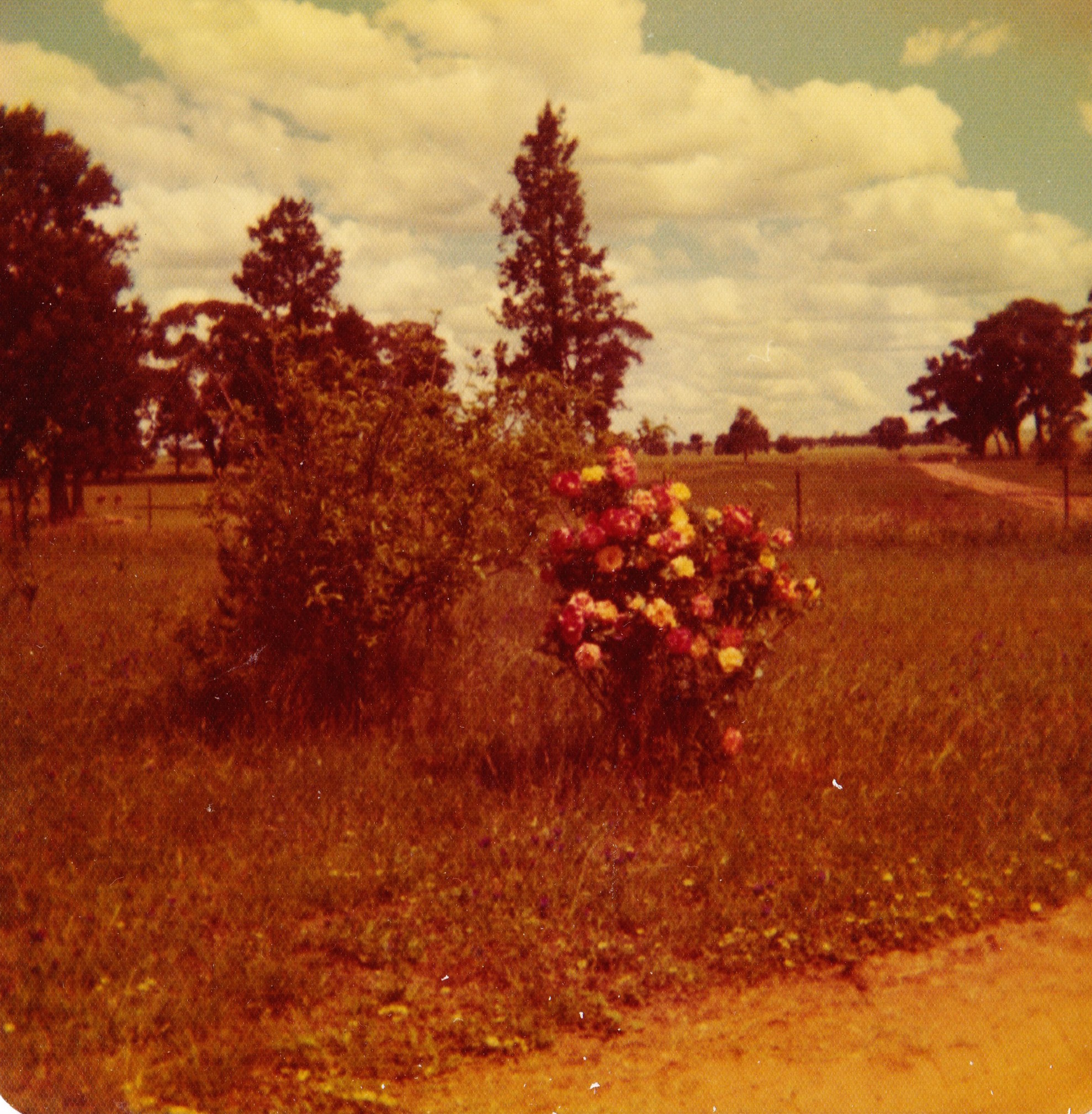 Given the location of the farm, water was (and is still) a precious commodity. Despite this, my grandmother managed to have some gardens. I’m told by my Aunty Ros that this Masquerade rose was one of her favourites. This photo was taken in 1975, the year that my parents were married.